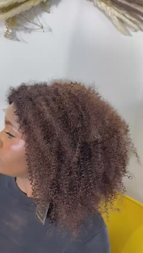 Optez pour un style audacieux et frais avec notre perruque Kinky Curly courte 100 % cheveux humains.
